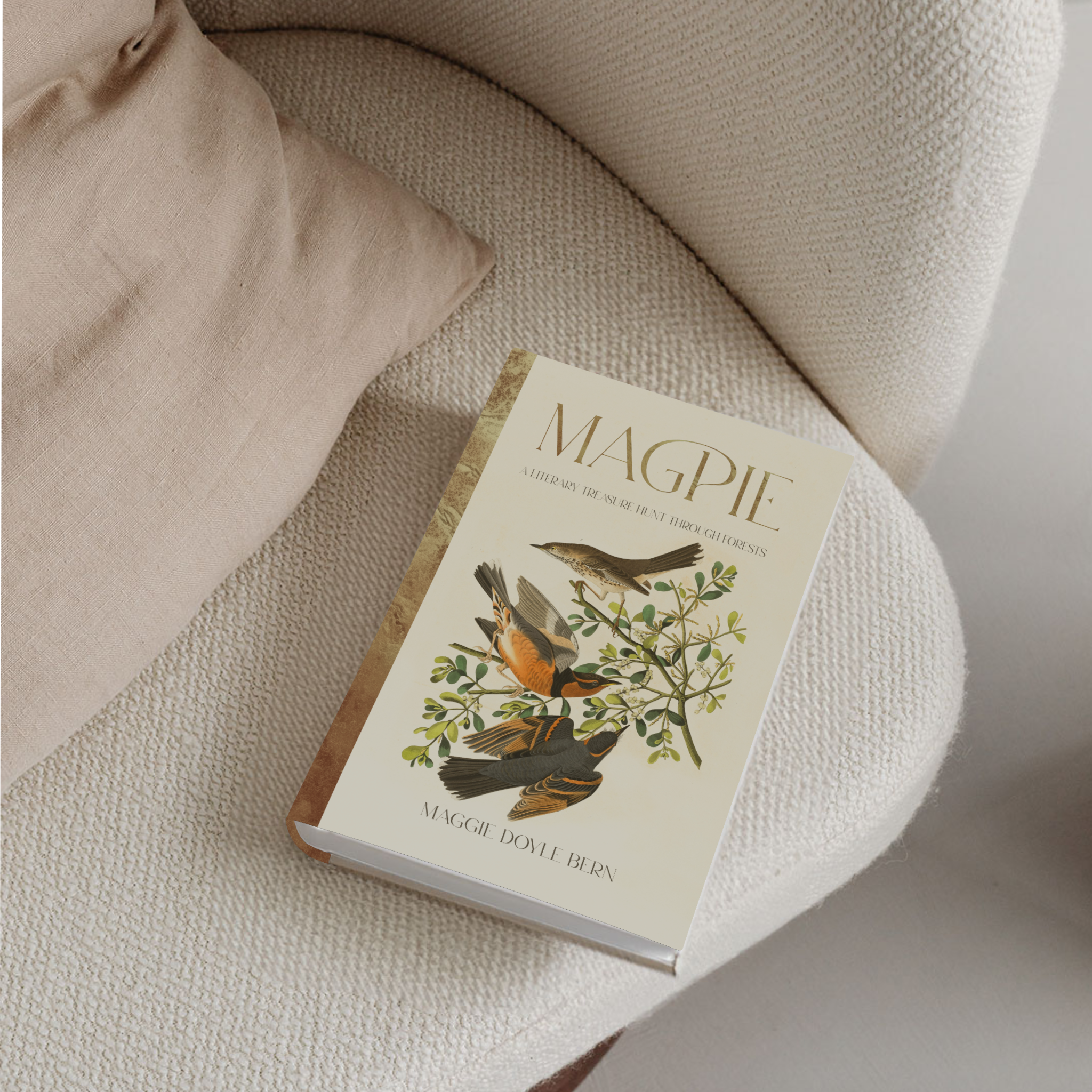 Magpie by Maggie is a book about magic realism, birds, surreal forestry and power wielding animals! An excited and fast paced fictional story that keeps readers glued to the next chapters, while whipping up fantastical visions in their minds. We kept the theme of birds and magic with artful illustrations and a touch of gold foil.